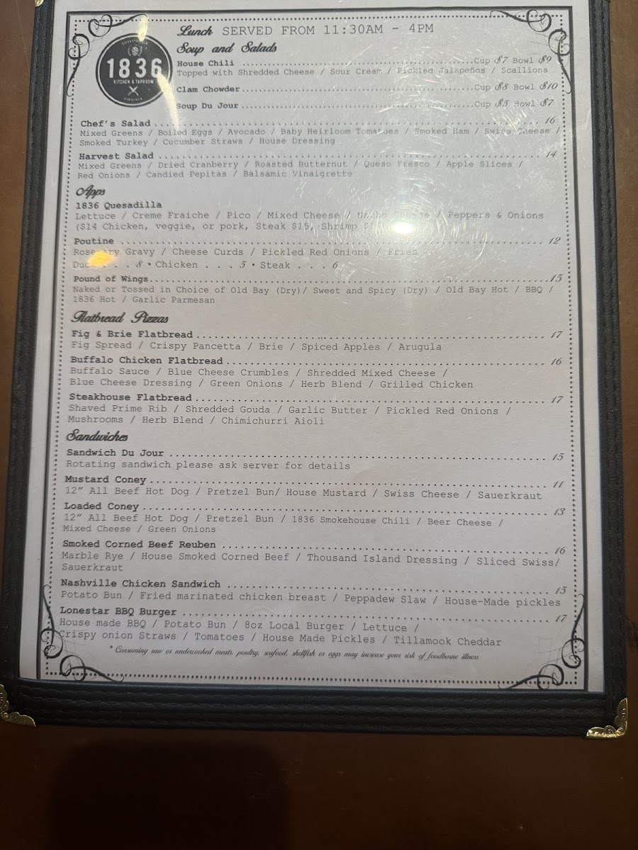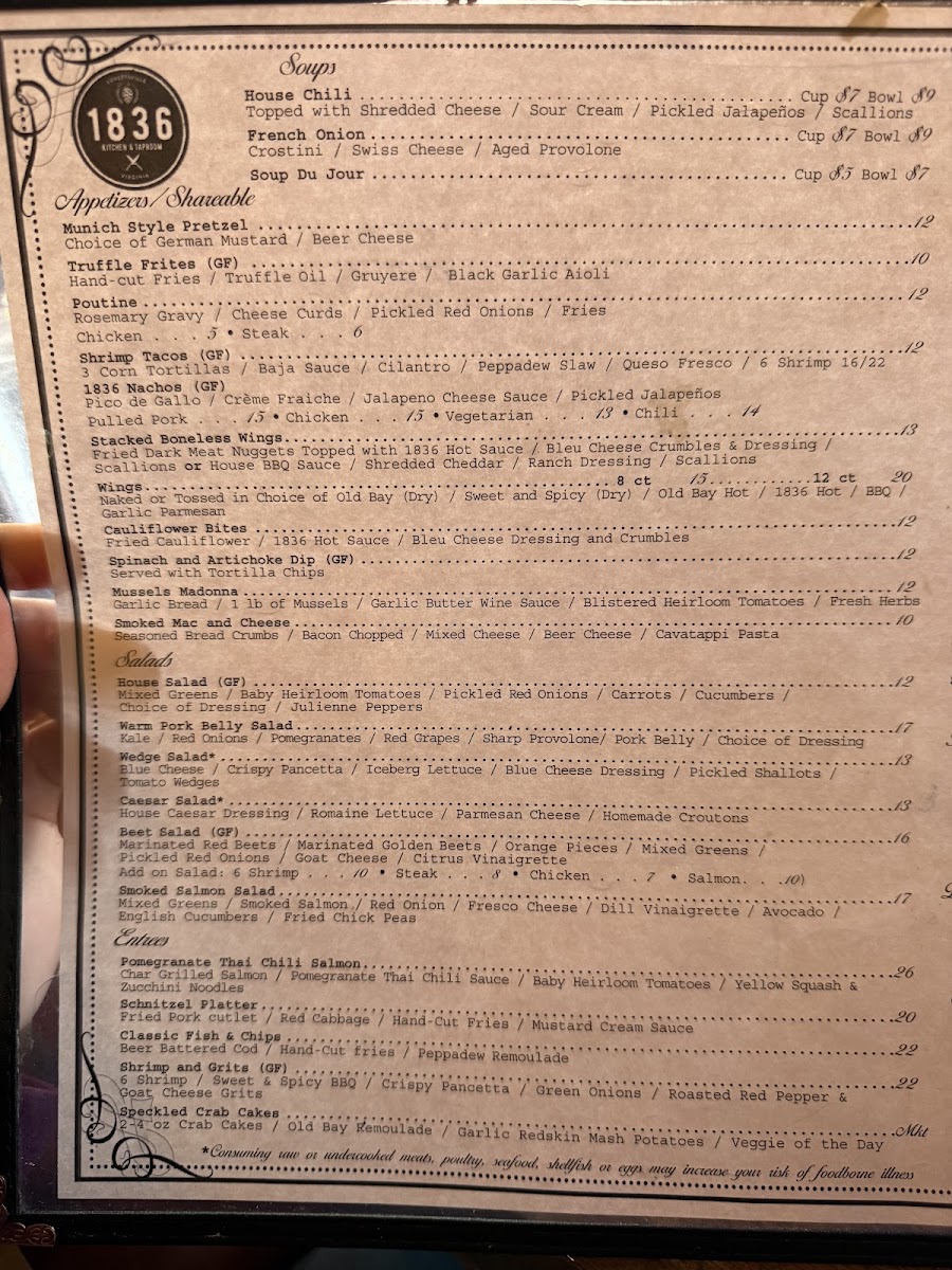 As for the drinks, the selection is varied and responsive to the vibe of the audience. Patrons have highlighted that the beer is ice cold, serving as a perfect pairing to many of the dishes on the menu. Overall, 1836 Kitchen and Taproom strikes a wonderful balance between food and drink, providing an enjoyable dining experience.